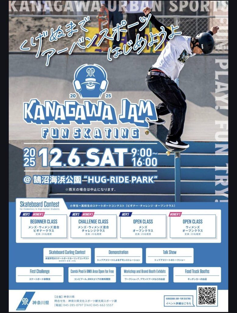 2025/12/3(水)、本日今週土曜日【@鵠沼海浜公園 ”HUG-RIDE PARK】にて開催される【KANAGAW JAM FUN SKETHING】紹介をさせて頂きます。