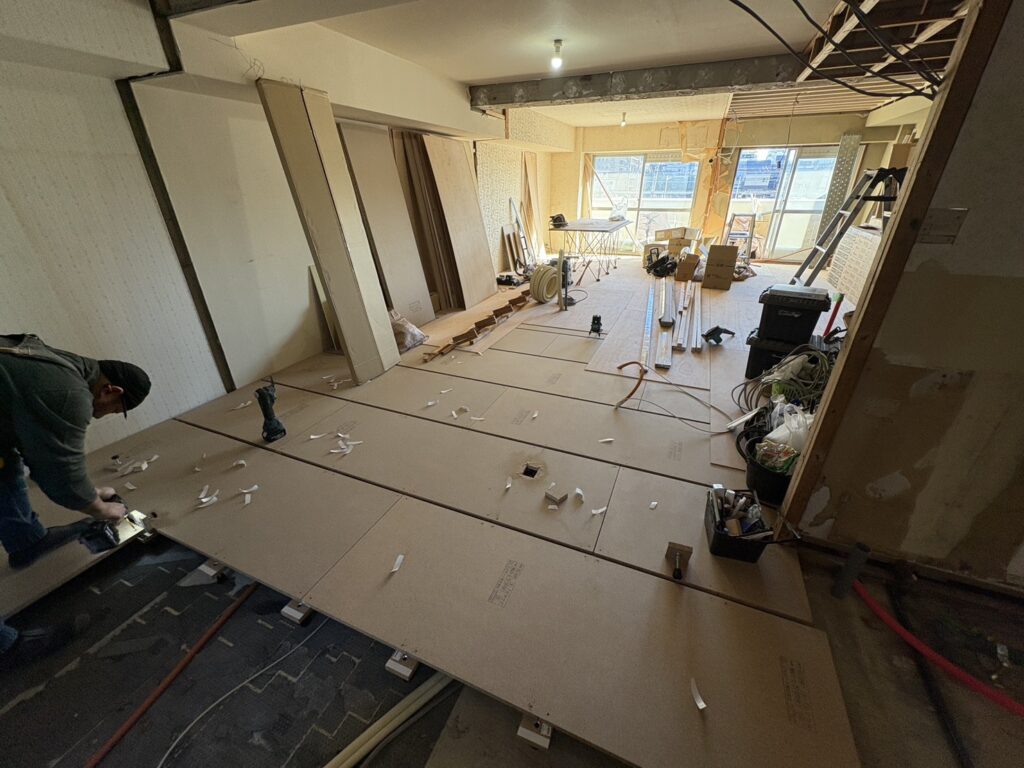 2026/1/26(月)、本日は平塚市宝町にて施工させて頂いております【マンション内装工事】から『新規給水給湯配管⇒置床設置』の投稿をさせて頂きます。