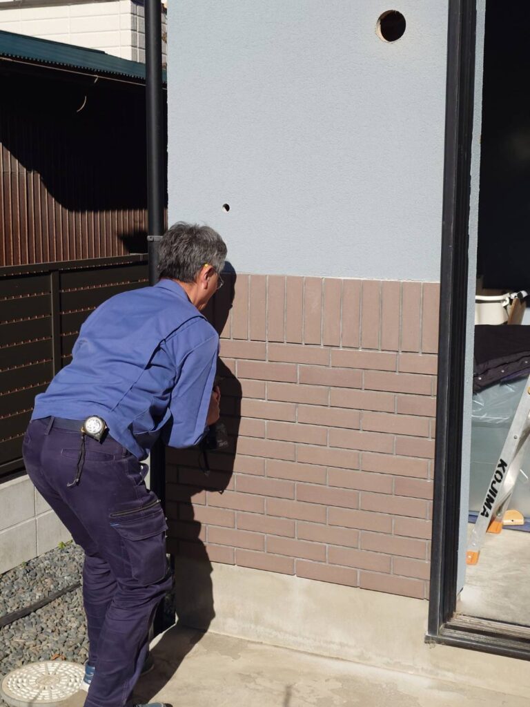 『換気ダクトコア抜き』『ガス管挿入口コア抜き』完了し、ガス管外壁固定するサドル取り付けています。