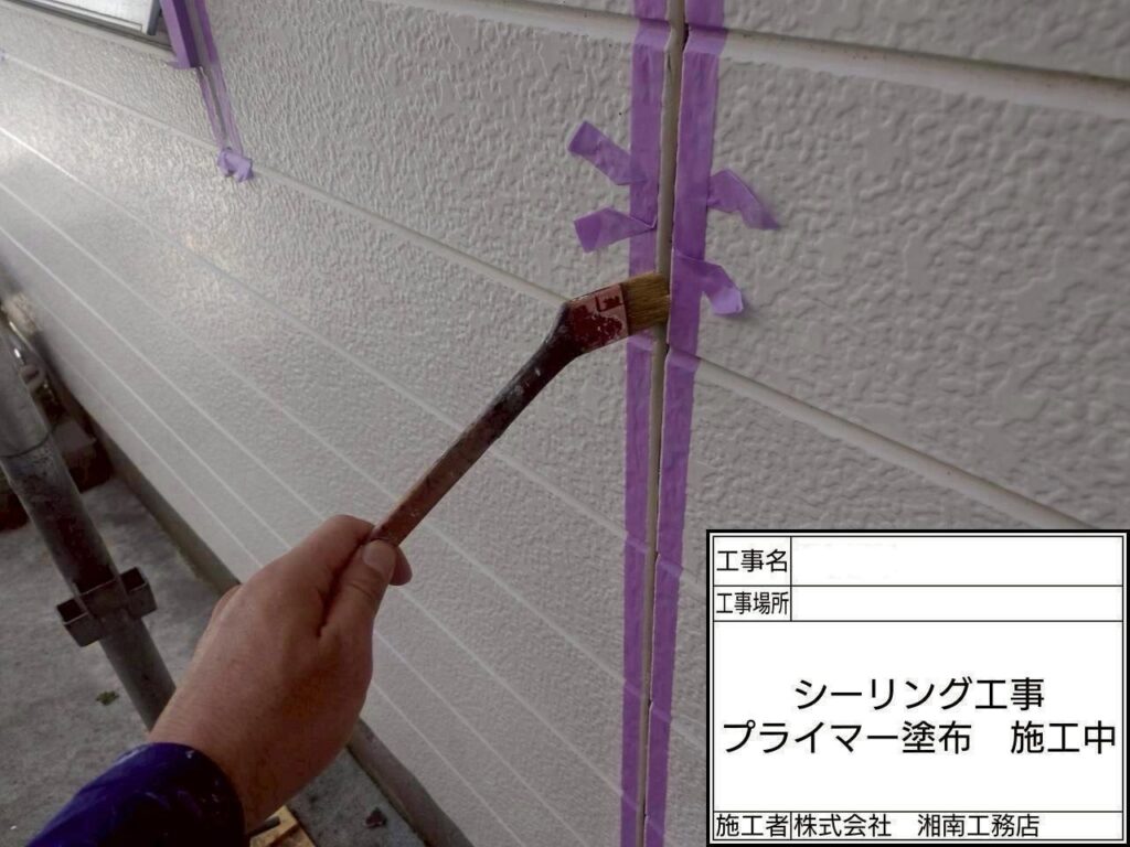 ※シーリング周囲マスキング養生後、プライマー塗布作業