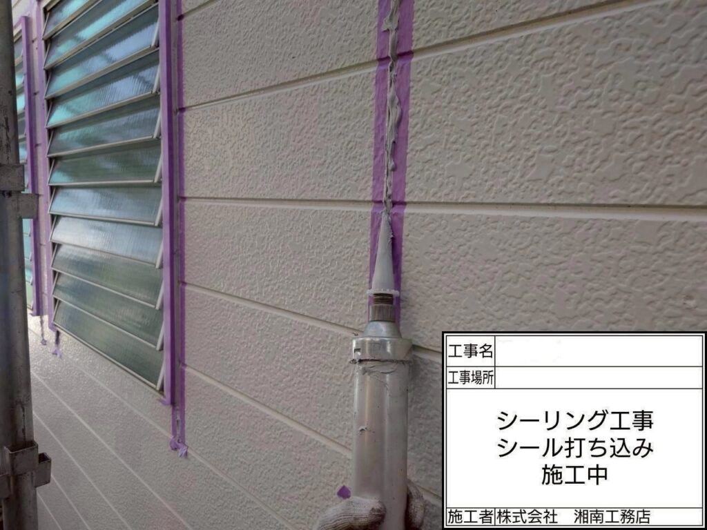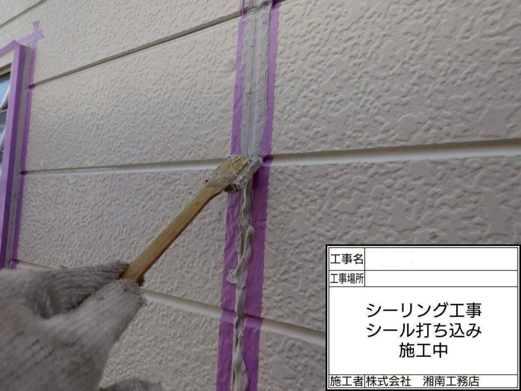 2028/11/8(土)、本日も平塚市にて施工させて頂きました【外壁・屋根塗装工事】から『シーリング打設作業』の投稿をさせて頂きます。