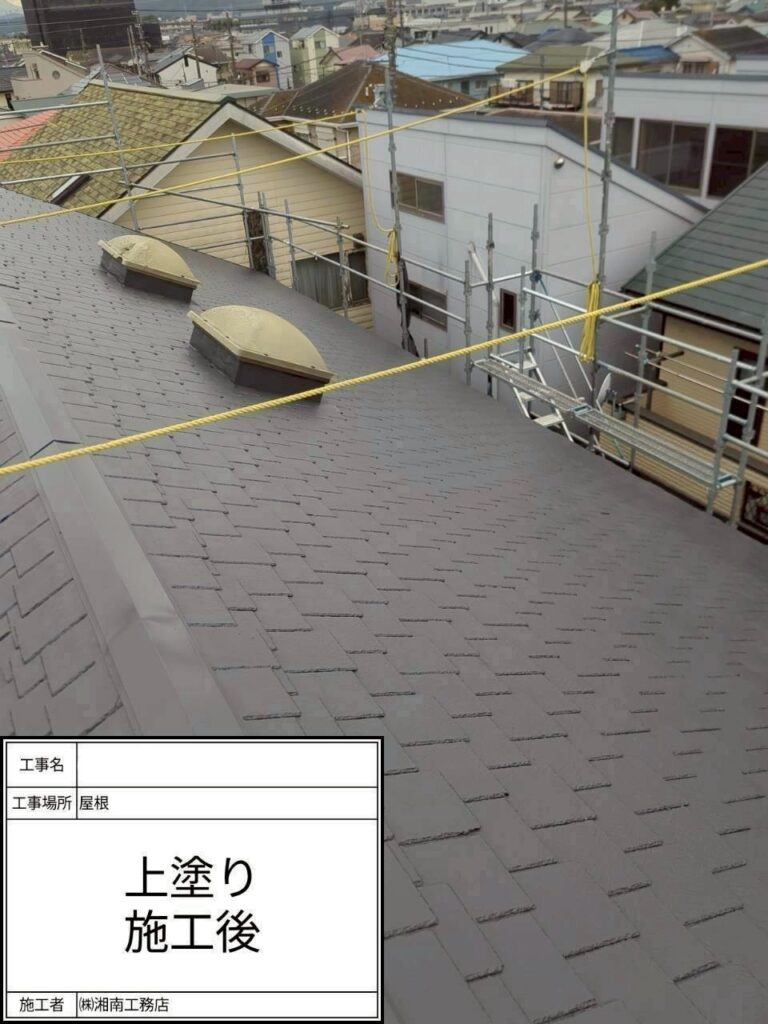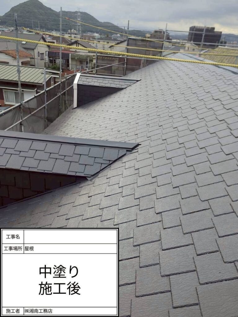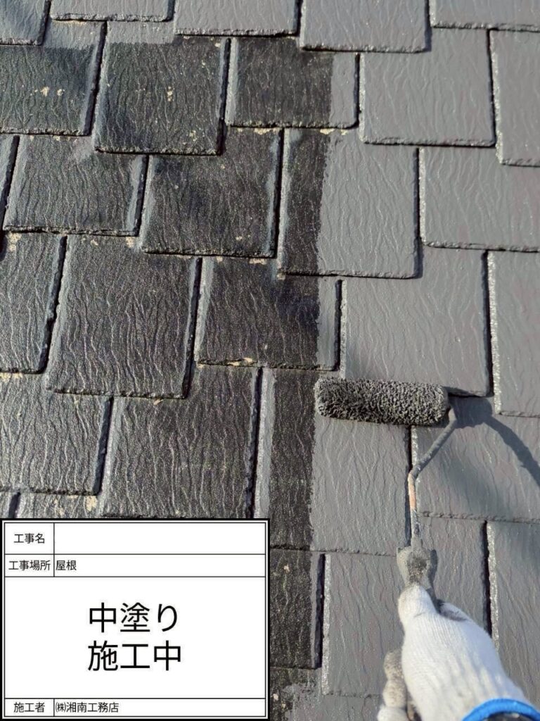 2025/11/12(水)、本日も引き続き平塚市にて施工させて頂きました【外壁・屋根塗装工事】から『屋根塗装中塗り/上塗り作業』の投稿をさせて頂きます。