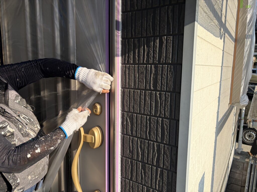 玄関ドアのビニール養生画像をアップさせて頂きます!!