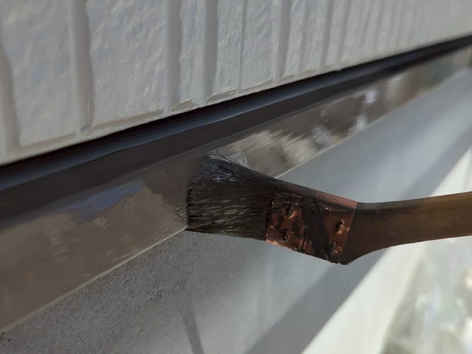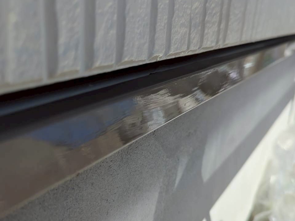 既存の水切り自体がとてもキレイでしたので、軽く研磨した程度ですが、錆が酷い場合は『水切りの交換』を行う事もあります。外壁を張る前に水切りは取り付けられていますので、外して交換する事は不可能です。既存の水切りを残し、上から新しい水切りをカバーする方法が安価に行える方法となります。状況に応じ判断し、施工方法を切り替える必要があります。