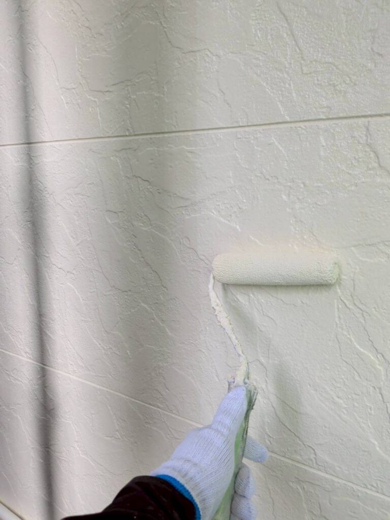 続きまして、外壁塗装中塗り⇒上塗りの画像もアップさせていただきます(*’▽’)