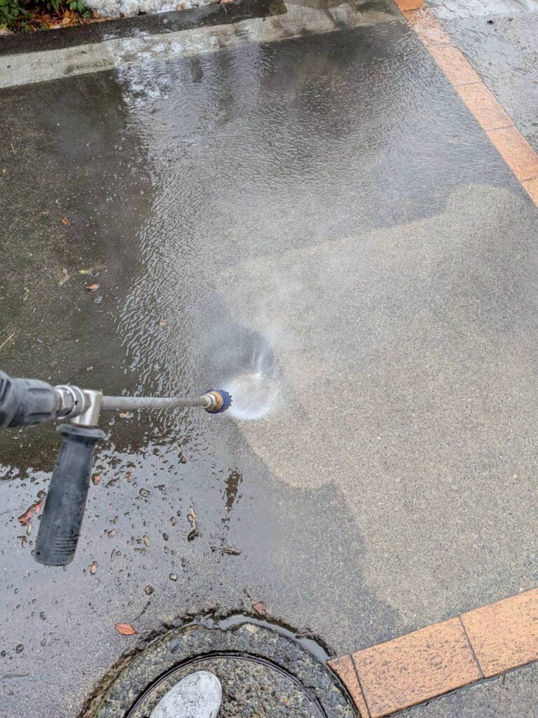 土間洗浄は、弊社がサービスで行っている作業となります。(※外壁がキレイになっても、地面が汚いと目立つ!と言う理由からです)