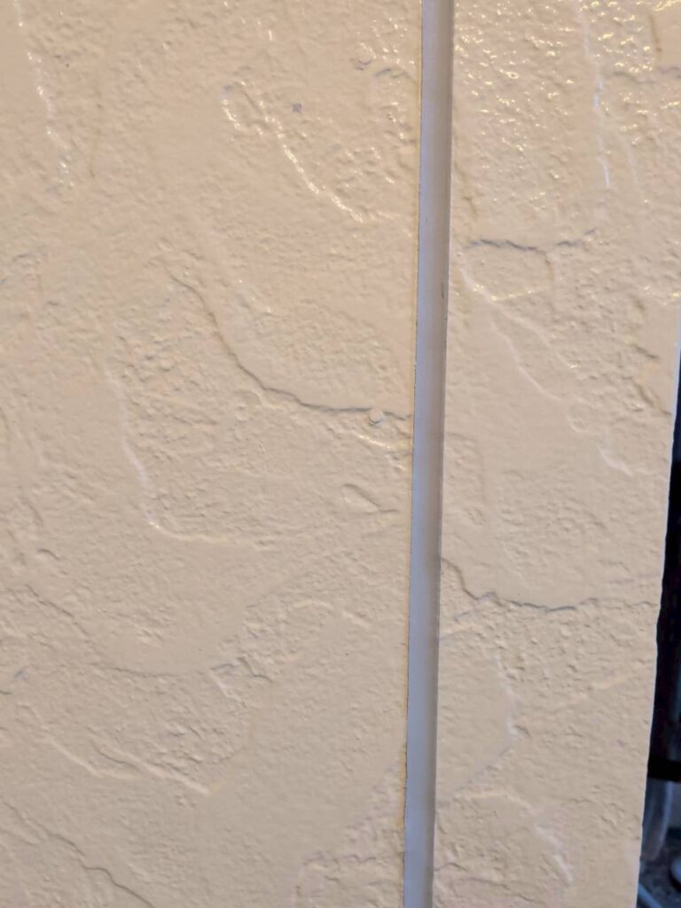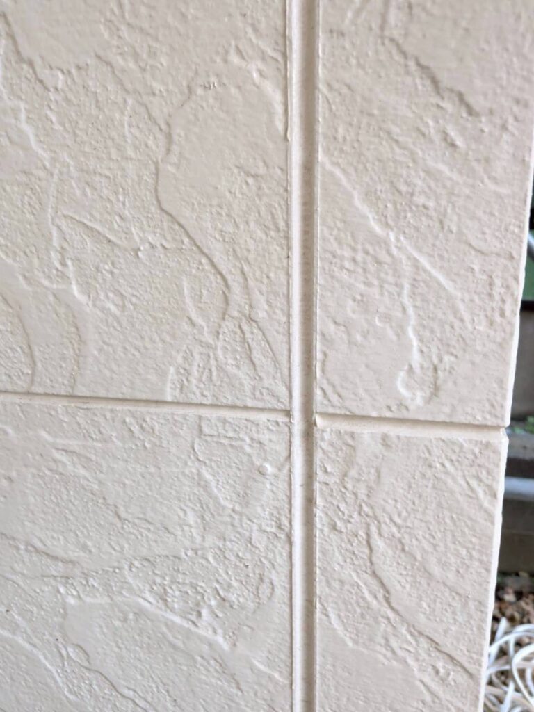 今回の様に外壁を塗り潰して塗装する場合には、目地打設が先行する作業となりますが、クリア塗装(透明塗料)を塗る場合は、目地打設が最後となります。