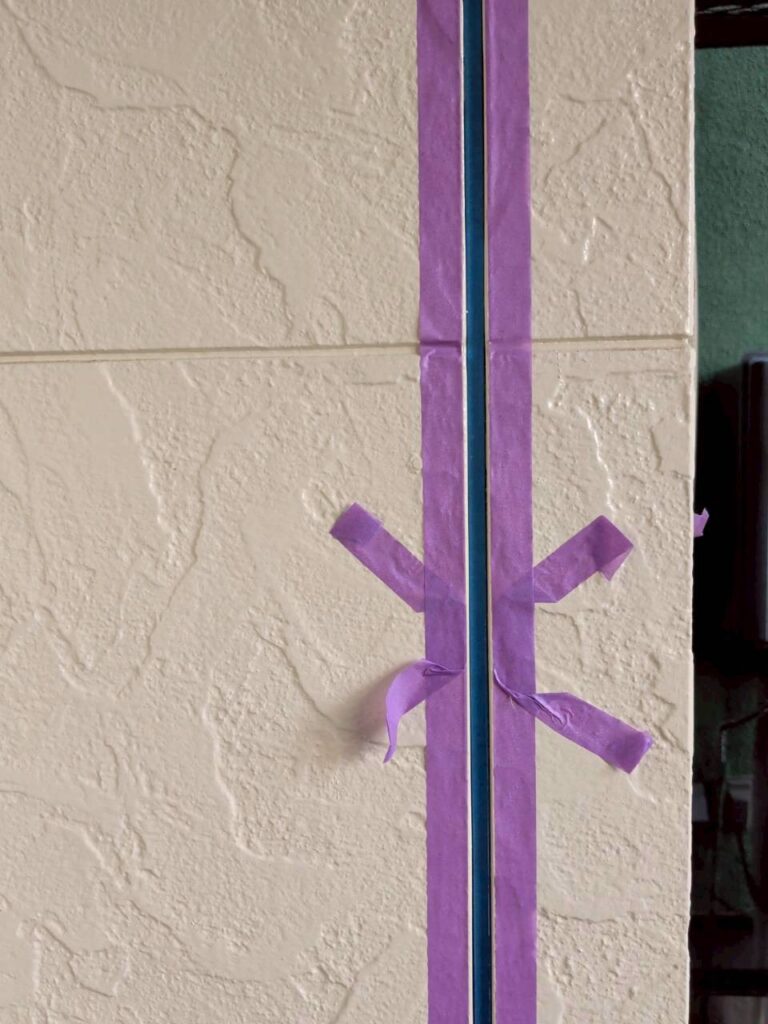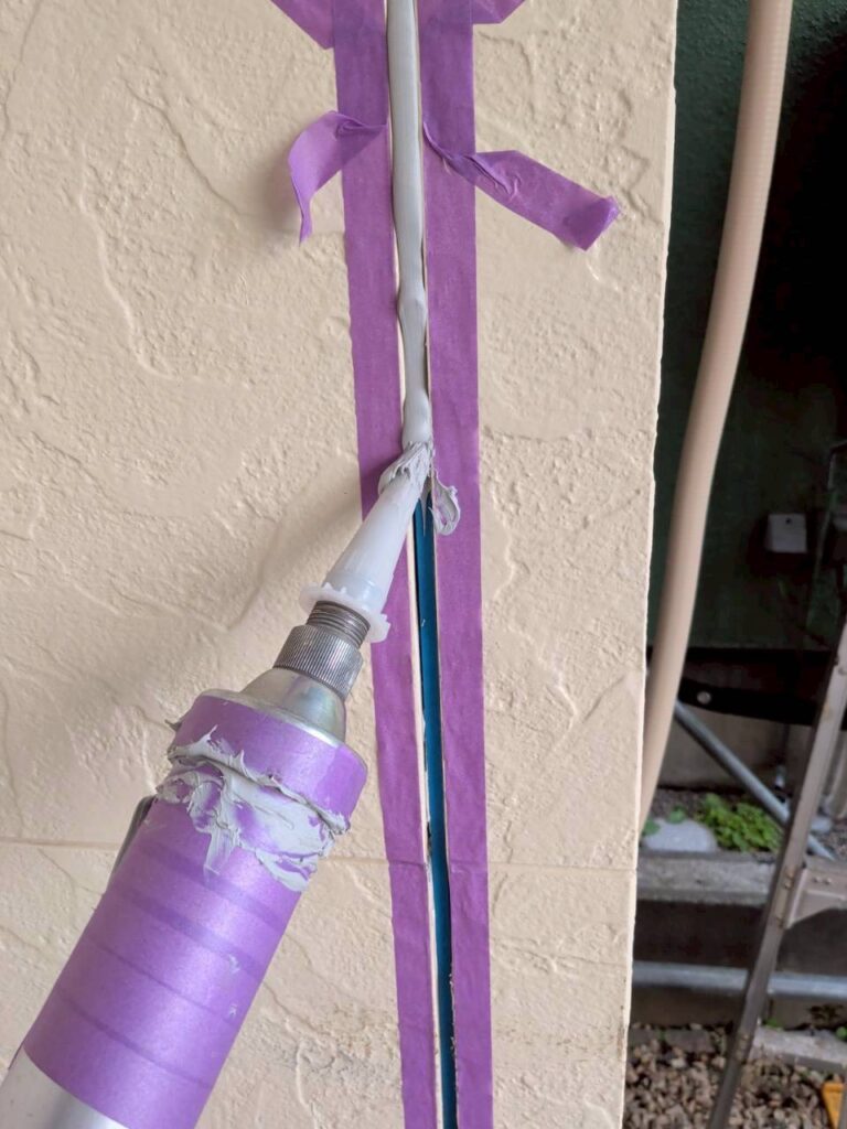 新しい目地材を打設する為に、外壁材を汚さない様に『マスキング養生』を施します。
