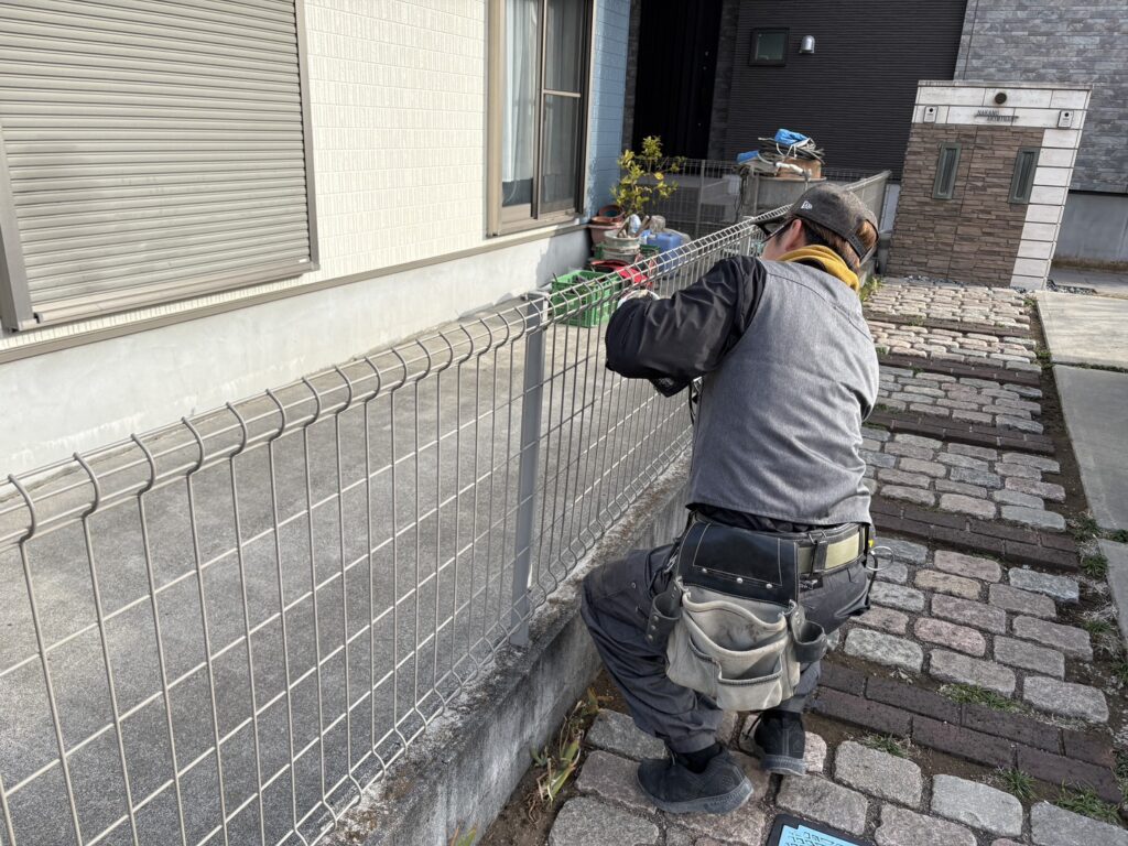 新設する施工は、根入りブロック含め計4段ブロックに対して、高さ低くしたフェンス取り付けます。