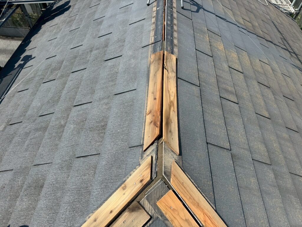 既存の屋根上部に新しい屋根材を葺く工事となります。