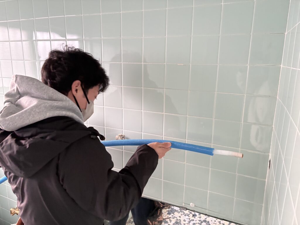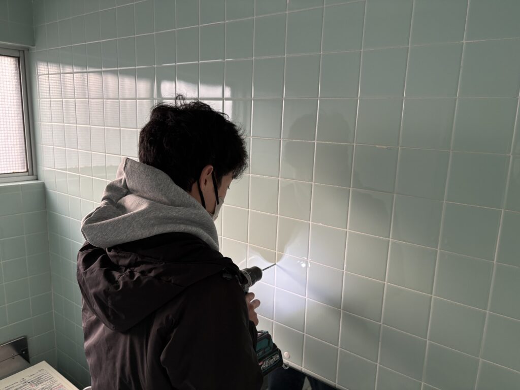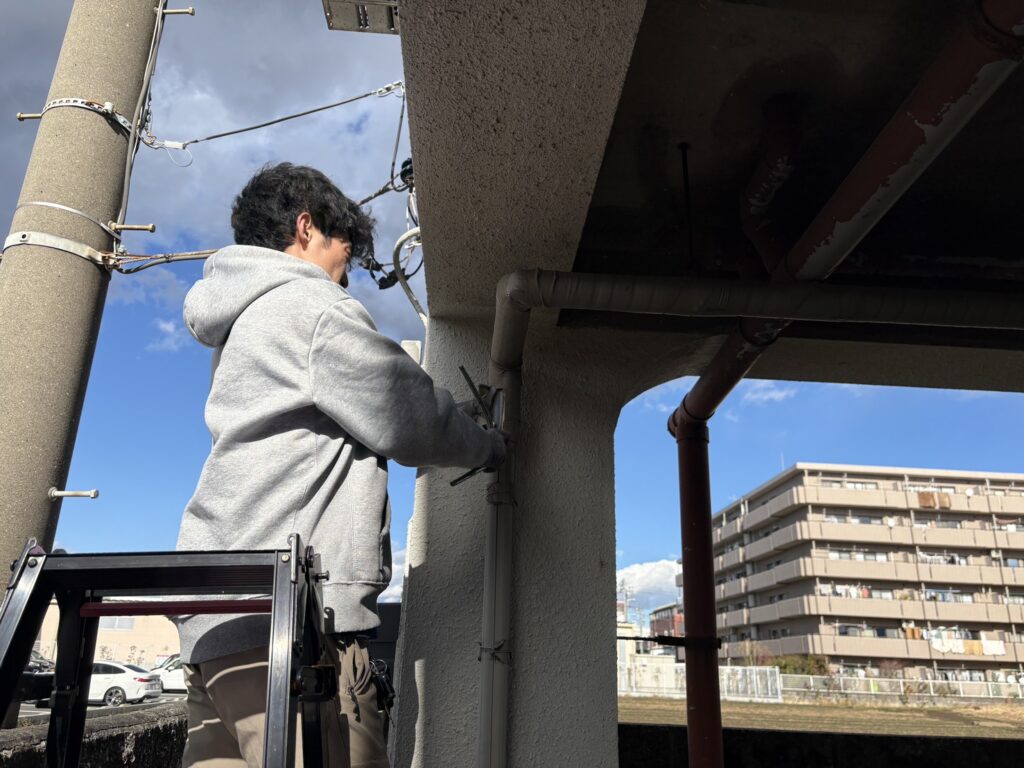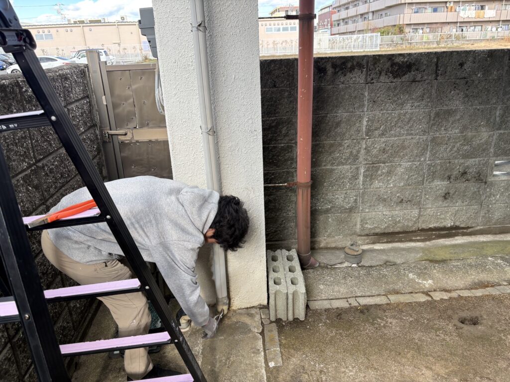 既存外壁が『モルタル』や『サイディング』の場合は、外壁に穴を開けて新しい水道管を通すのは簡単なんです。しかし、今回は【コンクリート打ちっぱなし】ですので、何より『コア抜き(穴開け)』がとても大変(>_<)