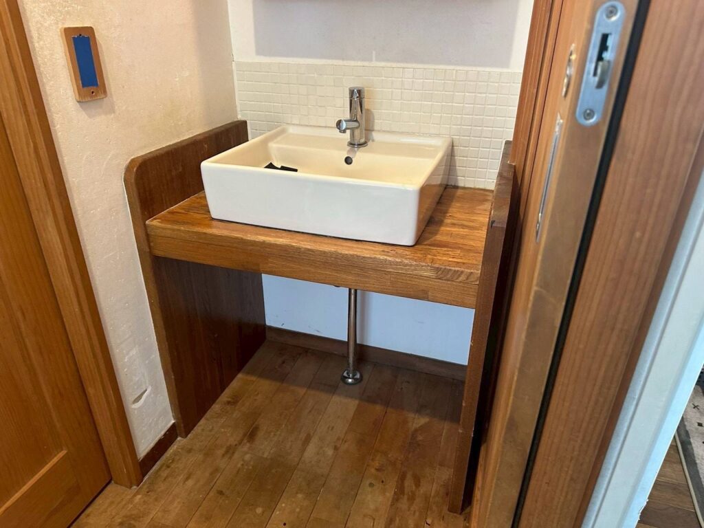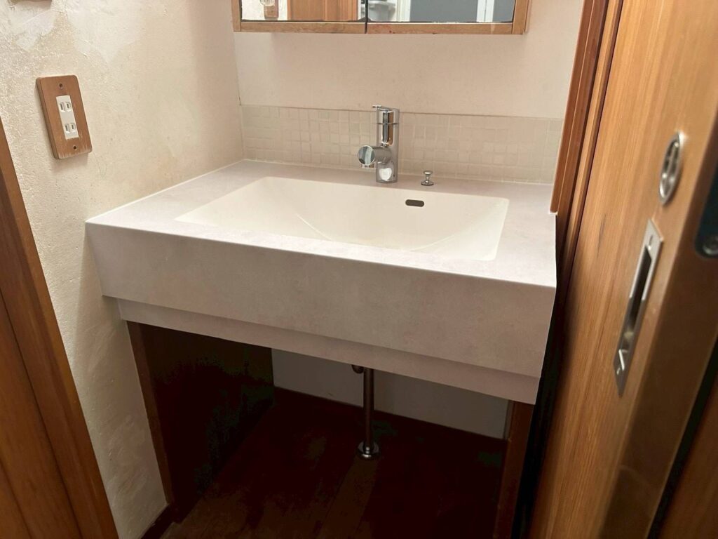 既存洗面ボウル受け台を、そのまま残して新しいボウルを設置します。