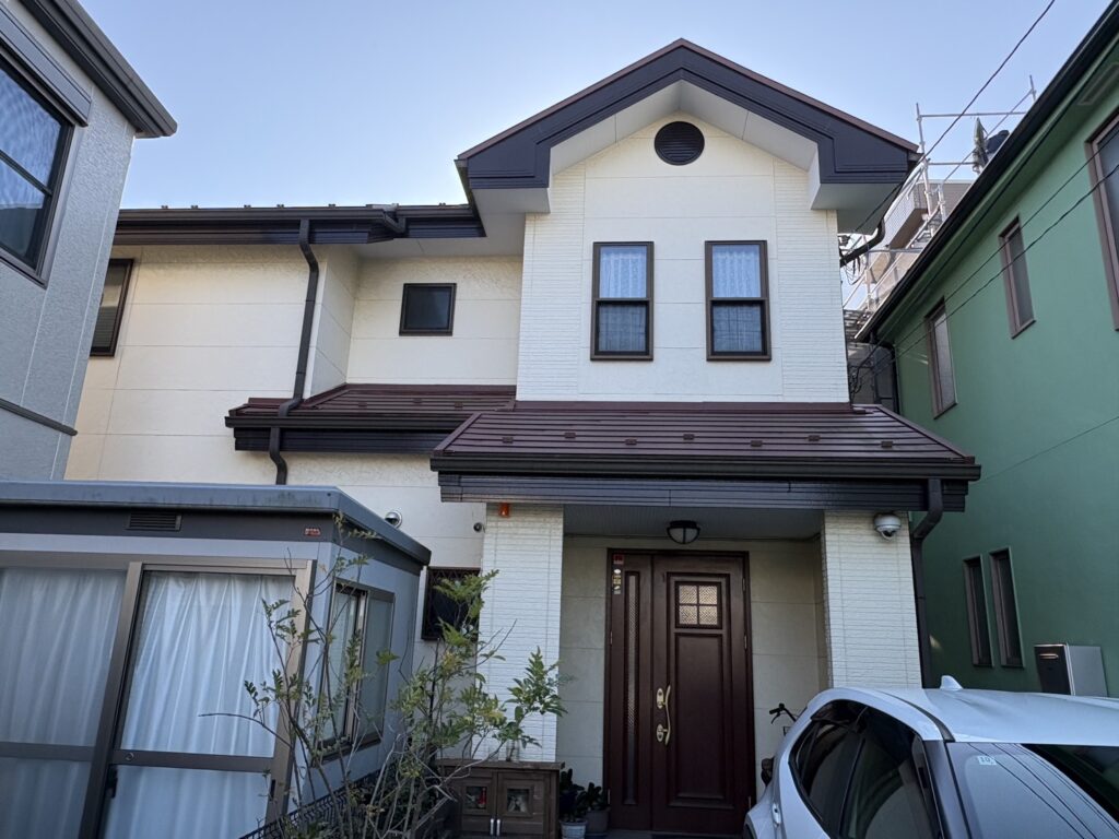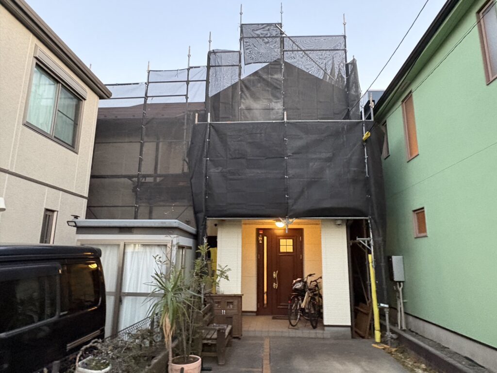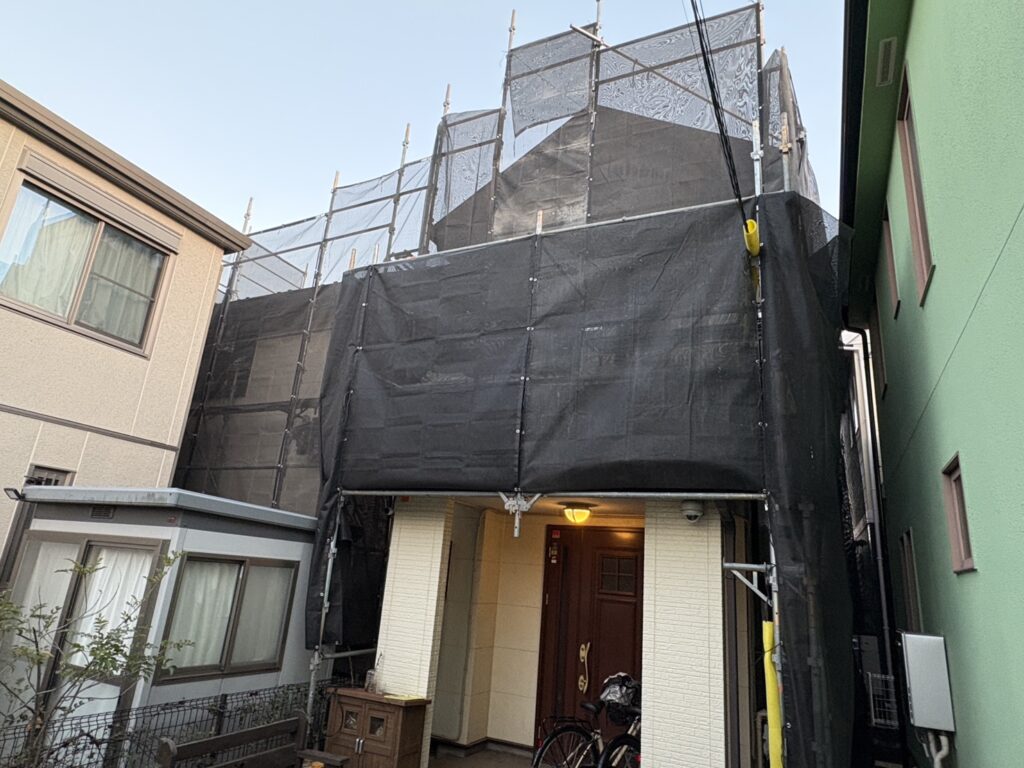 2026/2/9(月)、本日は茅ヶ崎市にて施工させて頂く事になりました【外壁塗装工事準備】の為、【足場架け】を施工いたしましたので、『Before/After画像』の投稿をさせて頂きます。